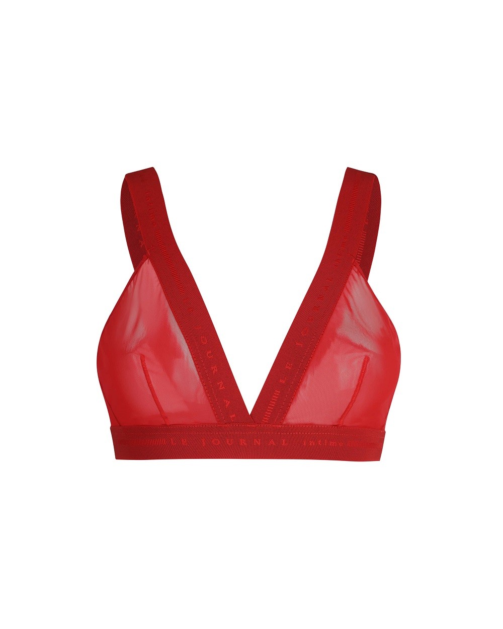 Открытый бралетт с треугольными чашками. V- образный вырез в зоне декольте и на спинке изделия. Поддержка осуществляется за счет широкой (3см) эластичной резинки.